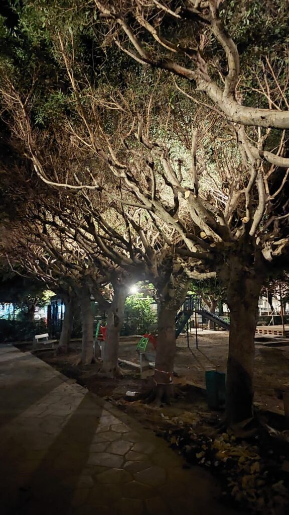 We met with Beit el Baraka to understand the scope of the renovation and for a walk-through of the park. Then together we mapped out our soft canopy tree lighting design that their volunteers would help us to install, so that the newly revitalized park can also be enjoyed after sunset.